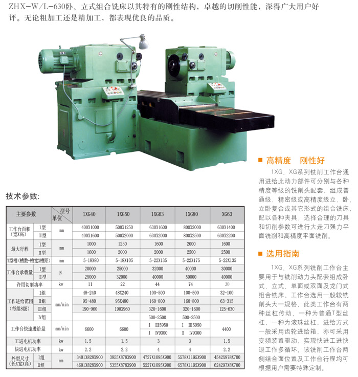 ZHX-W/L-630臥、立式組合銑床以其特有的剛性,可靠的性能,上乘的質(zhì)量合理的價格贏得了廣大用戶的信賴。
